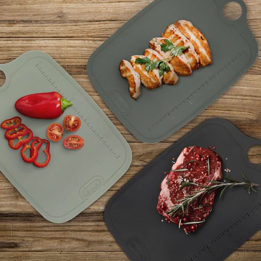 TPU Cutting Board. 3-Piece Set. Light Gray, Gray & Black.